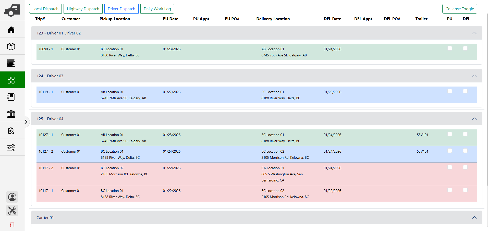 Instant snapshot of today’s pickups & deliveries by highway and terminal. Color-coded planning so you know what’s covered and what’s not.