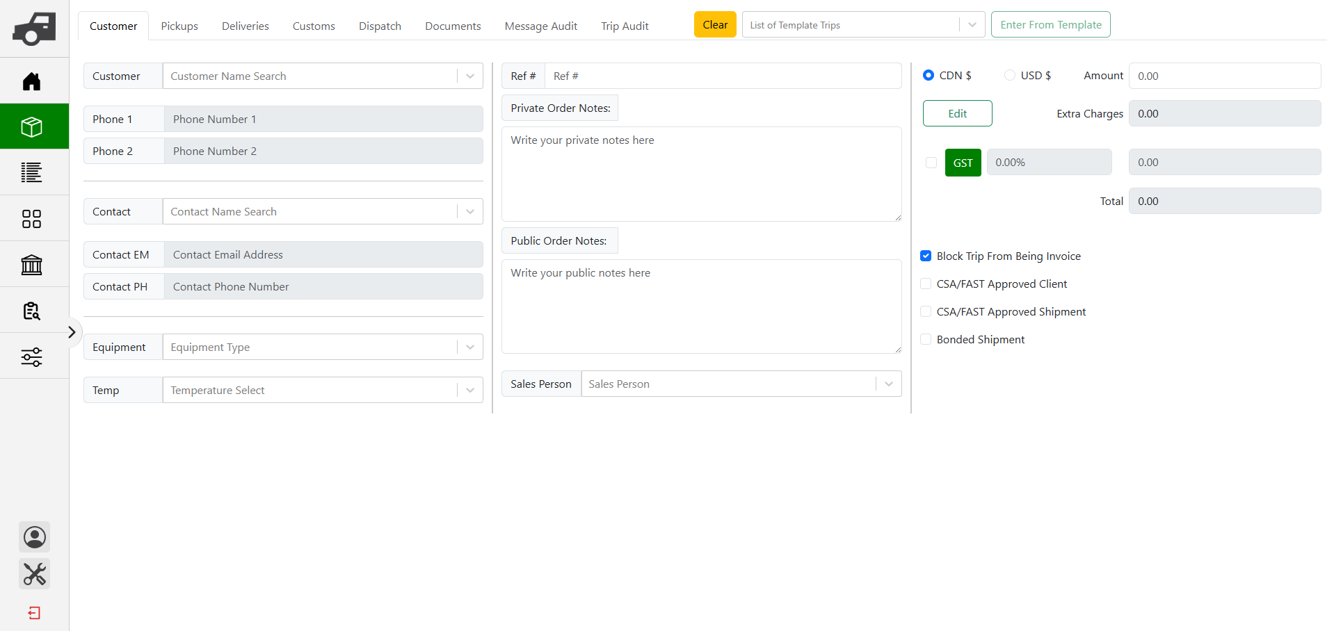 Enter and dispatch a load in under a minute. Trip templates save repeat lanes in ~15 seconds with saved carriers, drivers, addresses, and autofill.